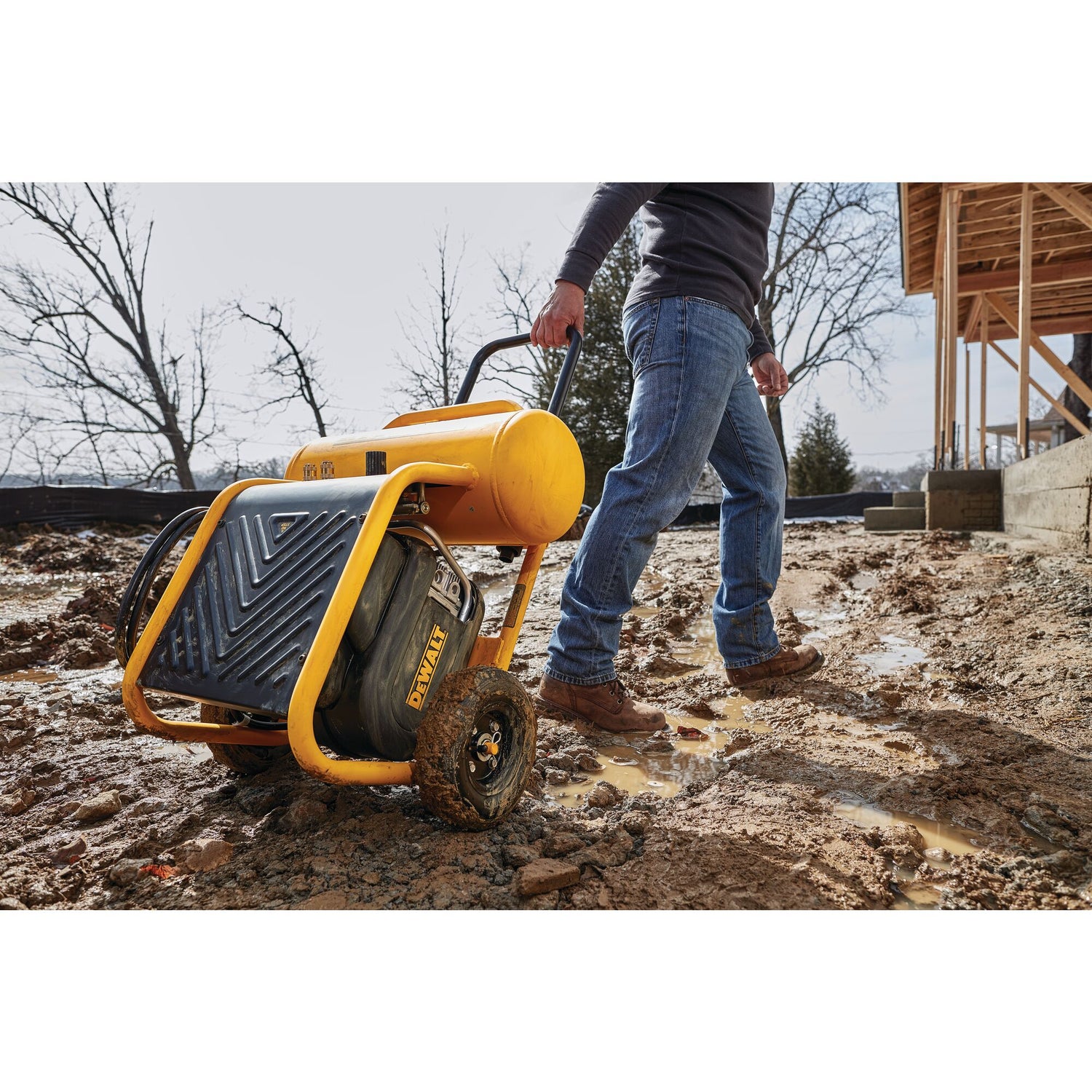 10-in pneumatic wheels allow for easy transportation around the jobsite