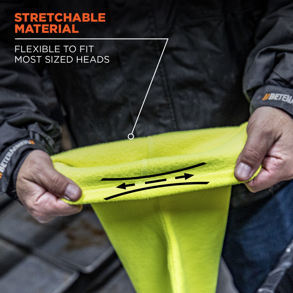 The heat-trapping fleece is warm without being bulky and will fit comfortably under a hard hat or helmet. The longer length offers extra coverage for your head and neck and can be tucked into your jacket to seal out the cold.