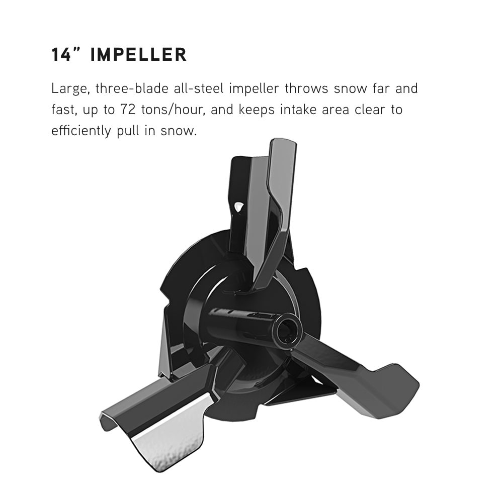A full array of features including hand warmers remote chute control headlight and 14 inch augers and impellers