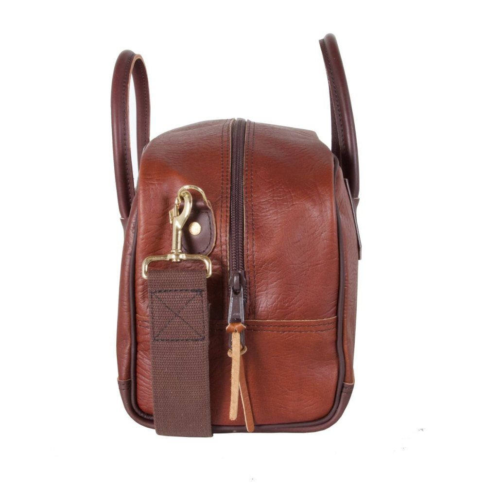 Duluth Pack's 18 Liter Capacity Doctor's Weekend Bag is the perfect companion for your short trips, combining style and functionality. Crafted from thick premium bison leather, this bag not only showcases a rugged elegance but also ensures durability for your travel essentials.