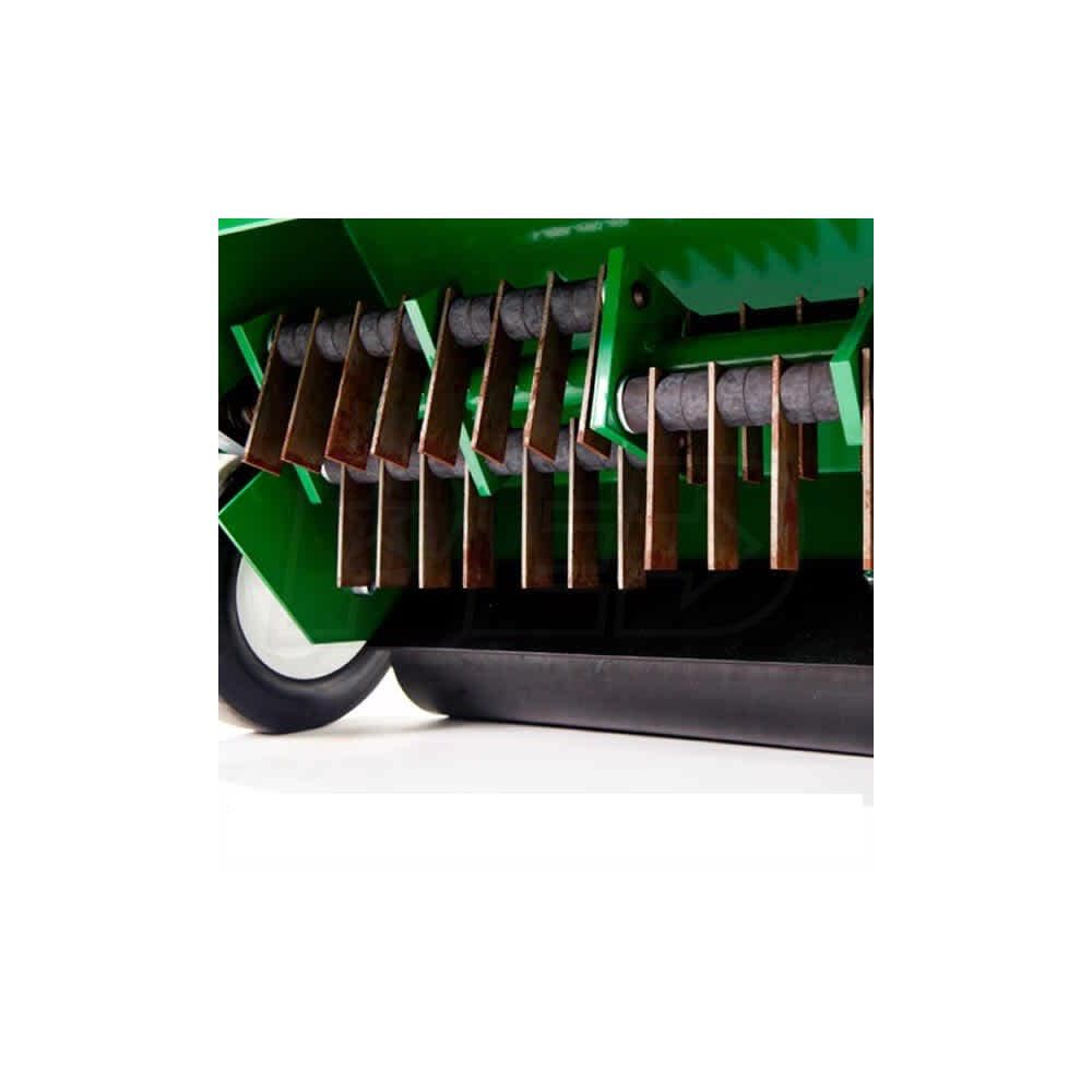 Billy Goat's Compact power rake maneuvers easily around small properties, removing matted thatch from turf in 20 In./51 cm passes.