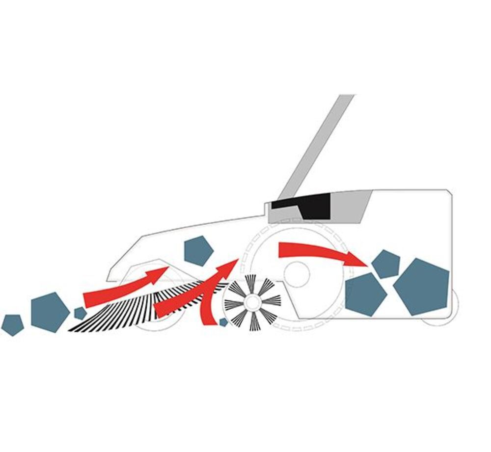The patented Turbo sweeping system sweeps twice with one move! The two front brushes rotate in opposite directions grabbing the debris directly in front of the sweeper while the brush roller on the bottom picks up all the fine particles, all the debris is then deposited into the large easy to empty 13.2 gallon container.
