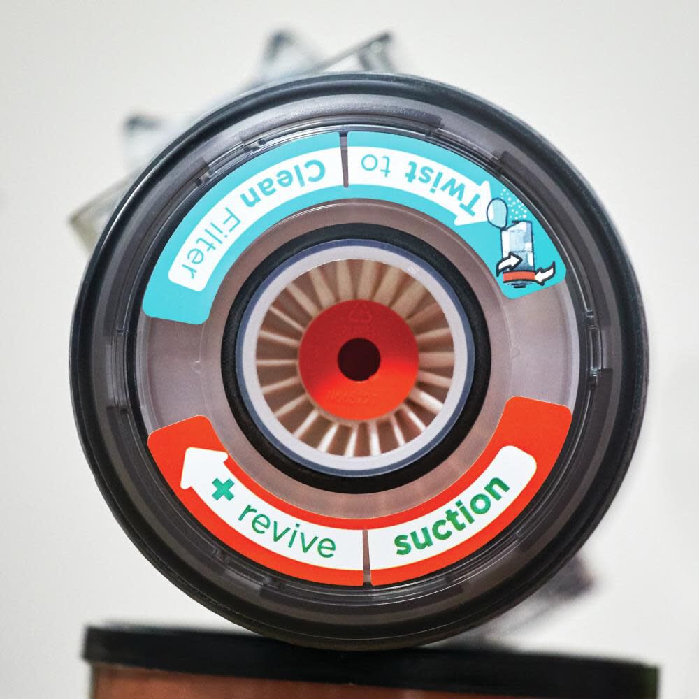 - Twist to clean: built-in filter cleaner provides up to twice the suction