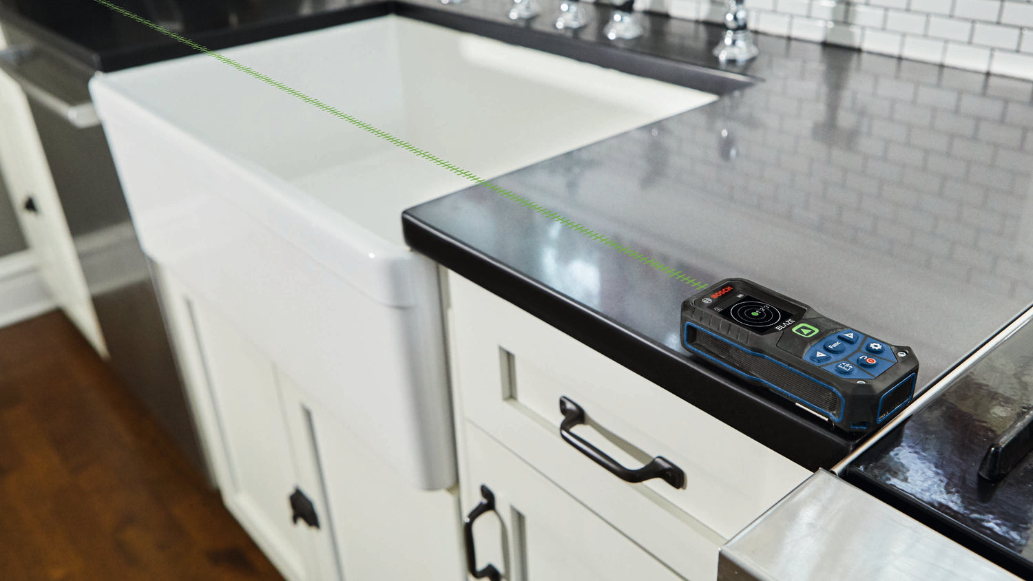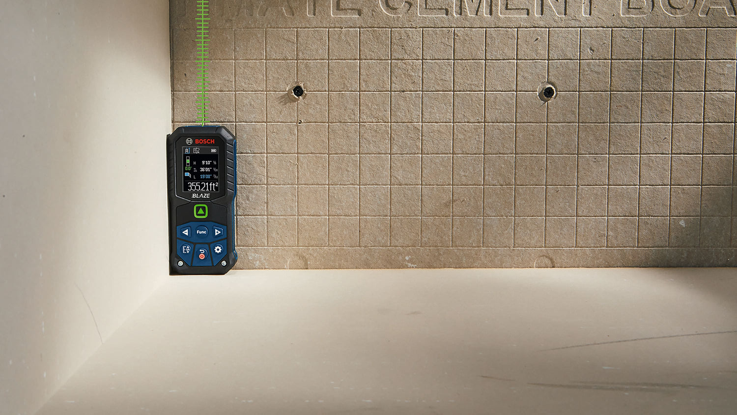 green-beam laser measure is a fully featured tool with an easy-to-read color display, great accuracy, an inclinometer for tilt angle and reinforced housing for durability.