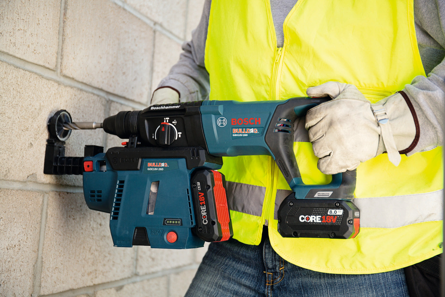 Four-flute bit technology – aggressively pulls dust away from hole, for faster and cooler drilling