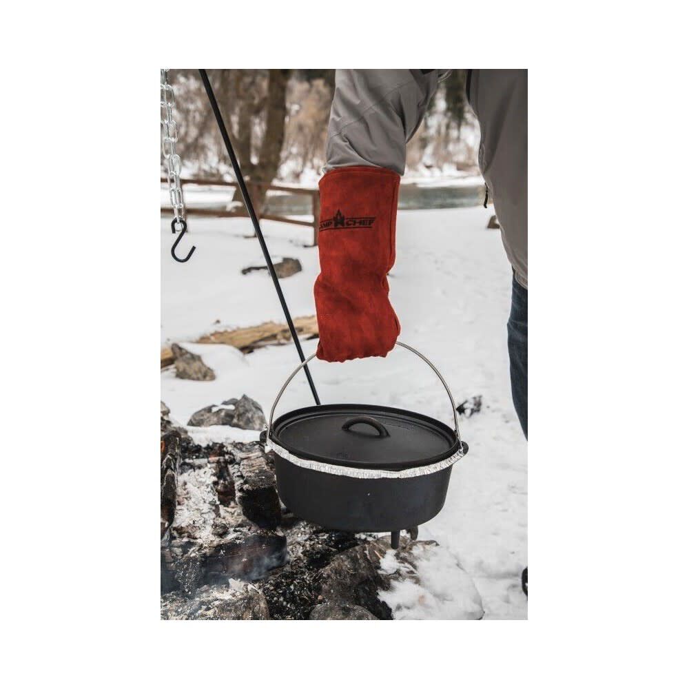 These high quality leather gloves will guard against heat and are perfect for dutch oven cooking, frying or any other type of cooking that may require additional protection.