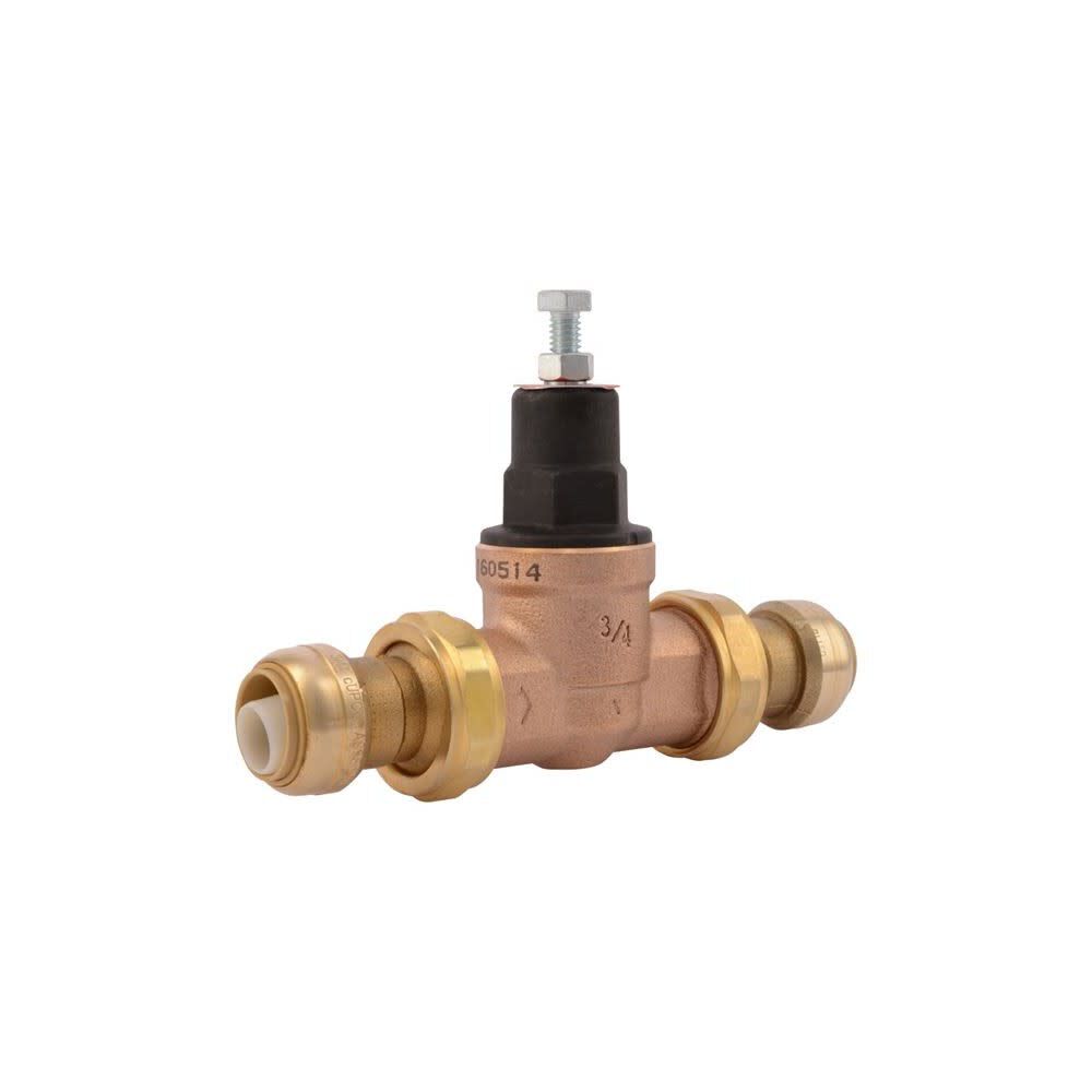 The EB45 pressure regulator with SharkBite push-fit connections features a half cartridge design that offers the performance of a high-end, cartridge-based valve and the price of a traditional regulator.