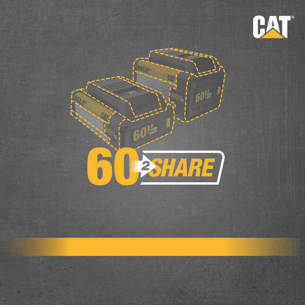 - ONE BATTERY, ENDLESS EQUIPMENT: Battery and Charger sold separately. Cat 60V batteries are compatible with the entire Cat 60V OPE product line. Cat 60V batteries are shielded from impact, water, and heat to optimize power, runtime, and cell life