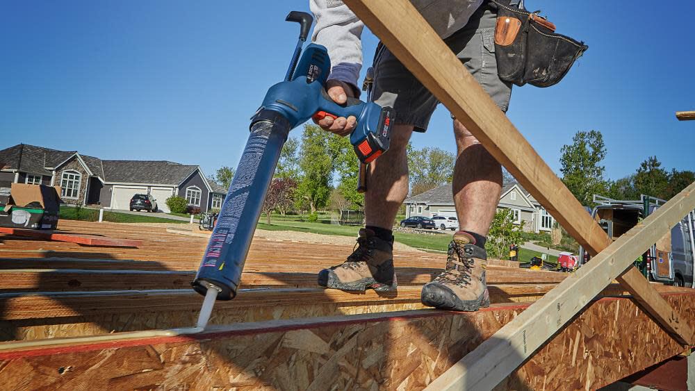 The Bosch GCG18V-29 18V Caulk and Adhesive Gun provides powered caulking to reduce the fatigue on your hand from manual caulk and adhesive guns.