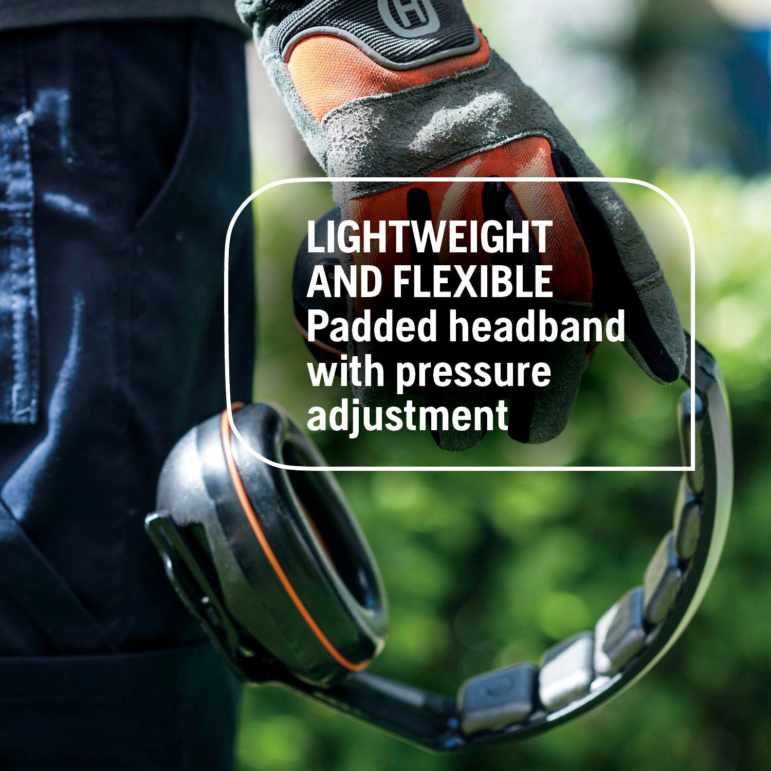 A great addition to your Husqvarna chainsaw safety gear, these ear protectors feature a flexible padded headband that adjusts to the shape of your head comfortably with pressure adjustment that keeps it in place.