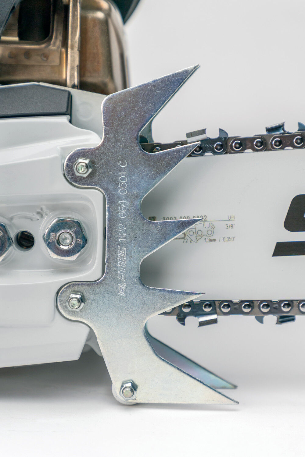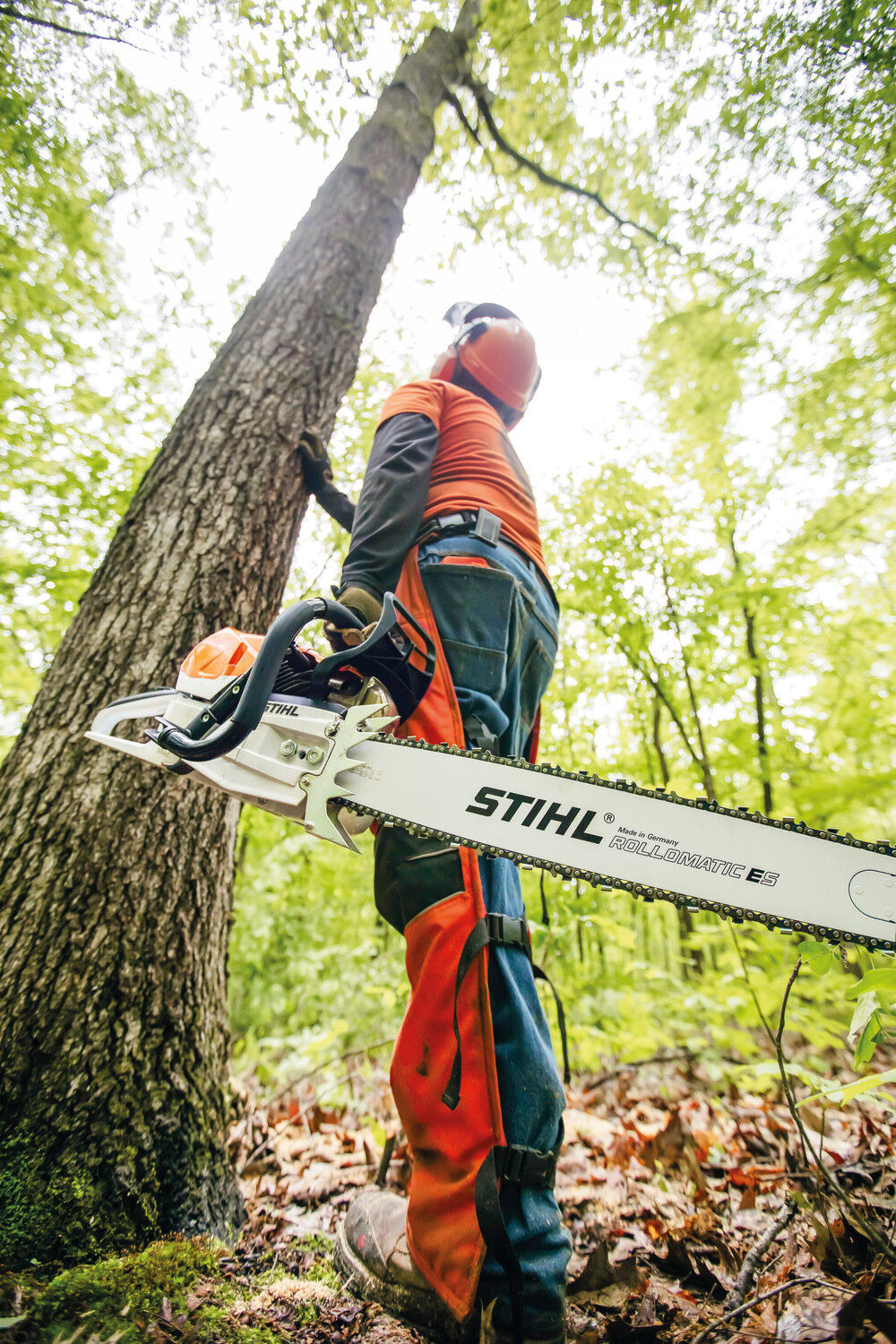 This is the lightest STIHL gasoline-powered saw in its class, weighing only 13.9 lbs., and has an anti-vibration system that helps reduce fatigue for the user when bucking and felling trees.