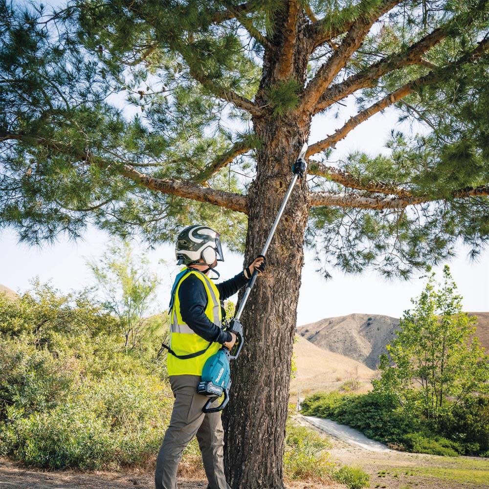 The Makita-built brushless motor delivers the power of a 35cc gas pole saw.