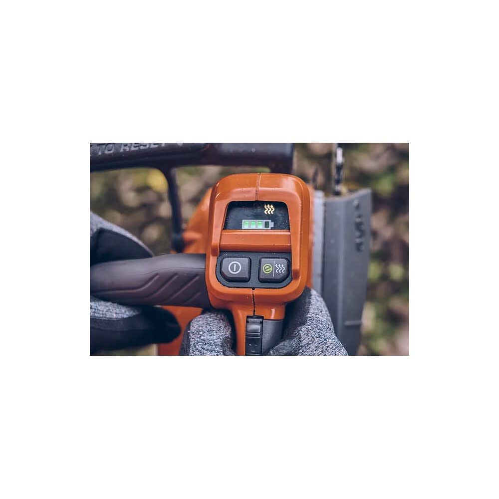 - Heated grips: Keeps your hands warm for greater comfort and productivity. Convenient switching on and off via the keypad, 24 m/s chain speed at maximum power