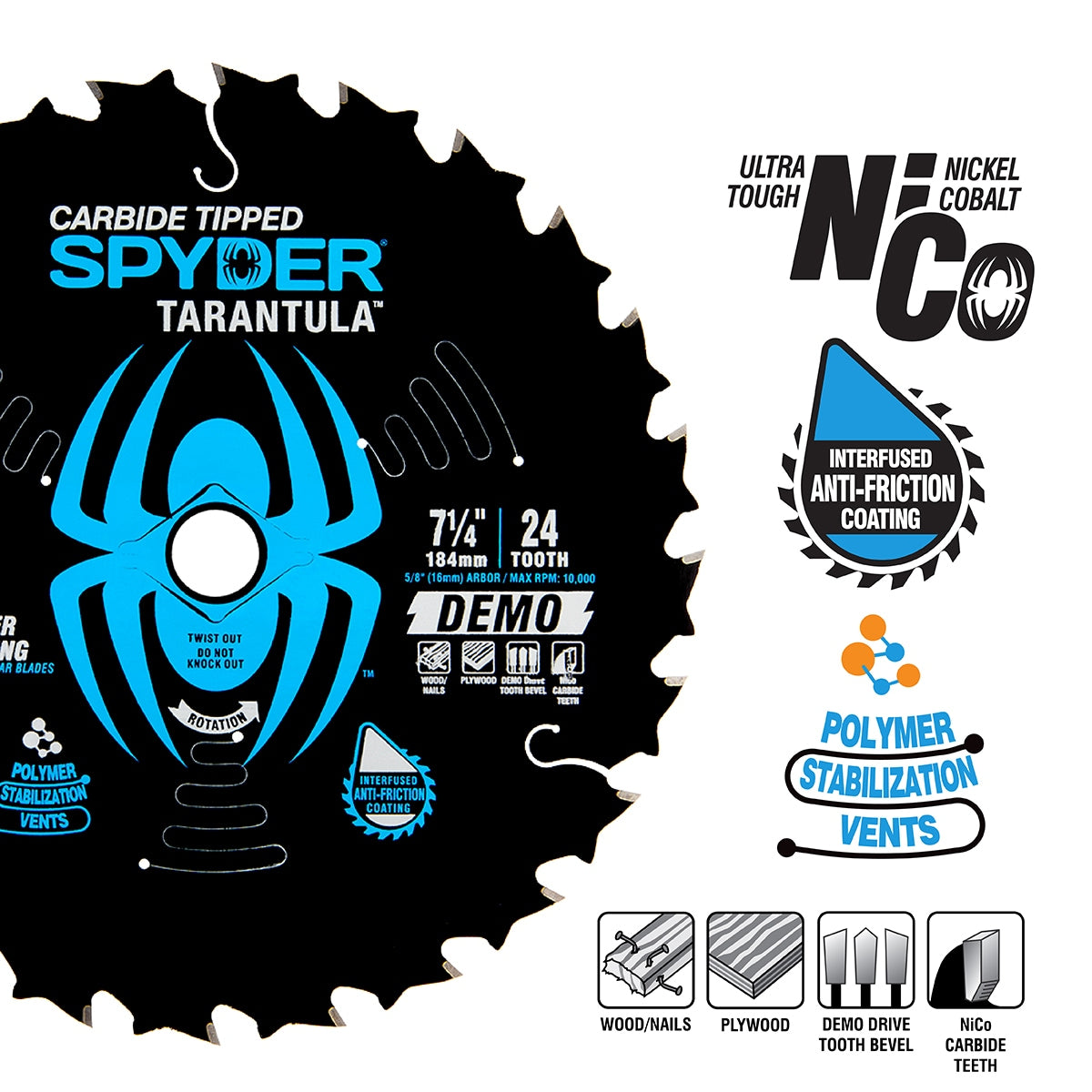Rip and crosscut with ease with Spyder Tarantula™ Demolition circular saw blades.