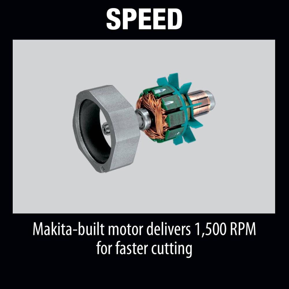 - Makita-built motor delivers 1,500 RPM for faster cutting