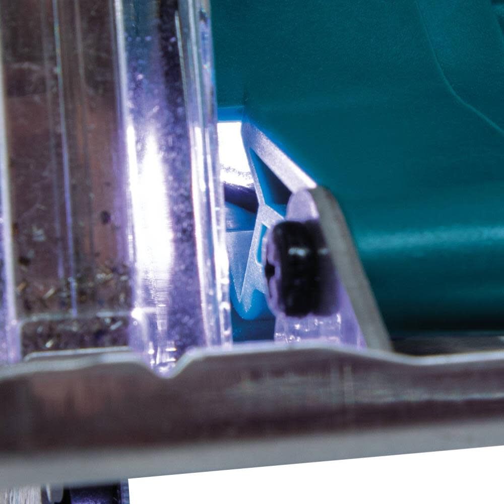 - Built-in L.E.D. light with an independent on/off illuminates the cutting line at the front of the saw