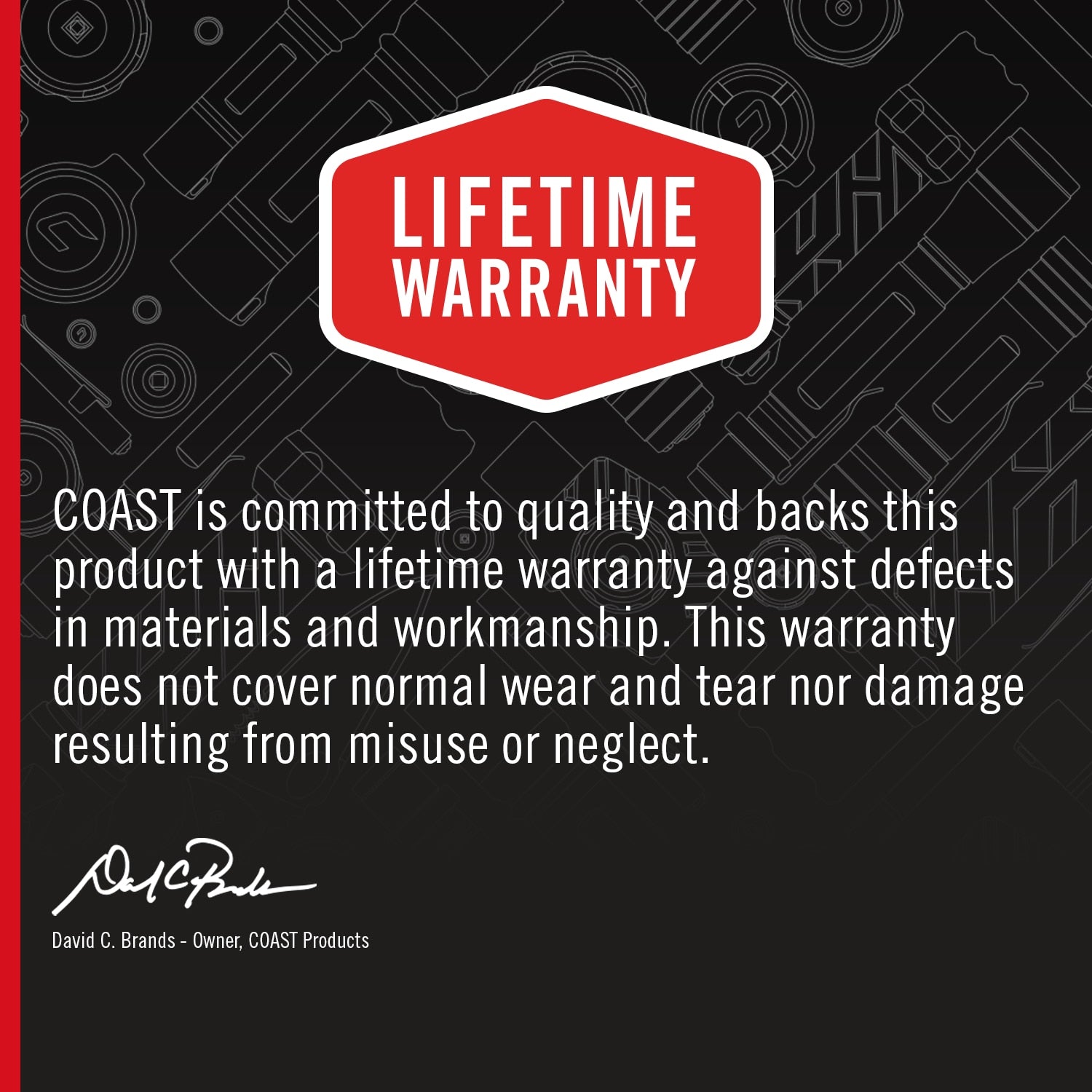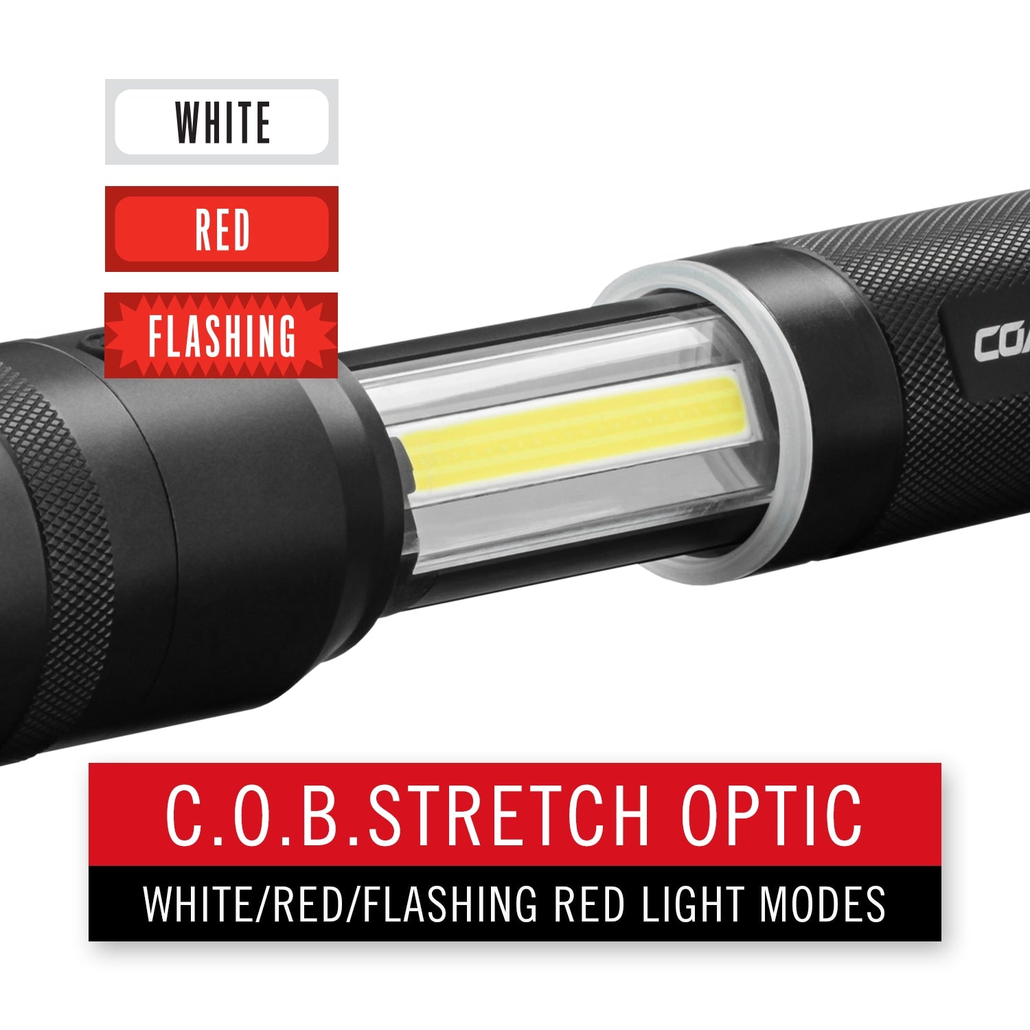 The COB optic: COAST lights featuring chip on board (COB) technology cast a wide beam handy for up-close work—from a strip of LEDs built right onto the chassis, without a standard optic