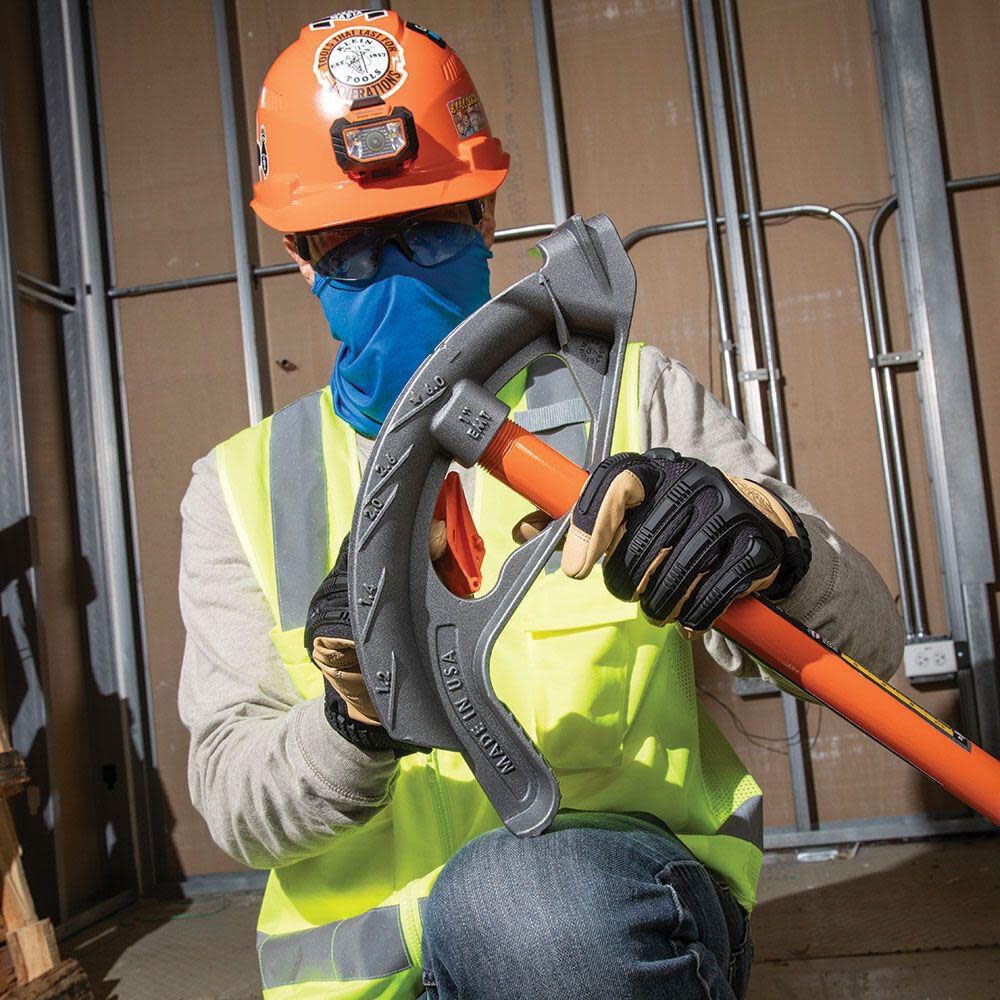 Klein Tools' Conduit Bender Head is designed to handle thin wall EMT up to 3/4-Inch and rigid IMC up to 1/2-Inch thick.