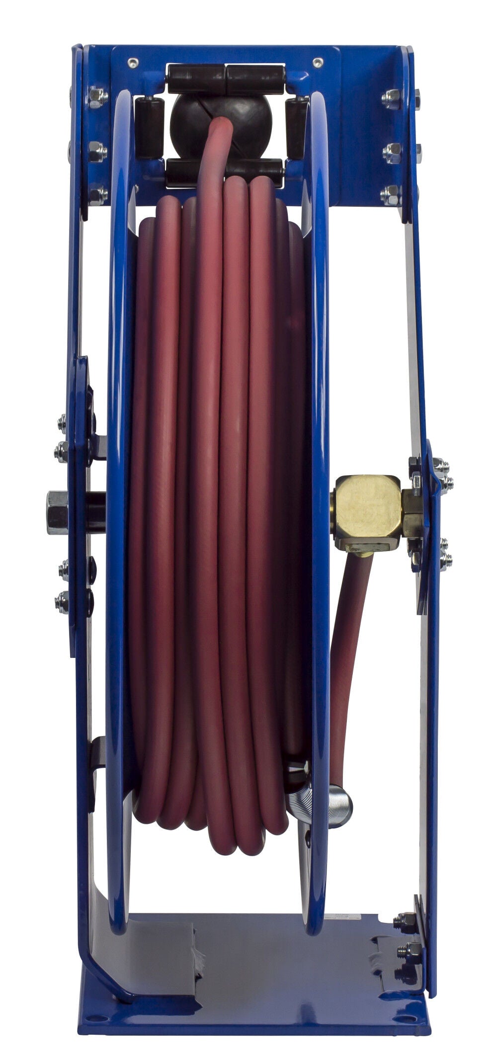 - OTHER FEATURES INCLUDE - long lasting, chip resistant and rust inhibiting CPC powder coat finish, adjustable solid rubber hose stop, and sturdy permanently lubricated precision bearings.
