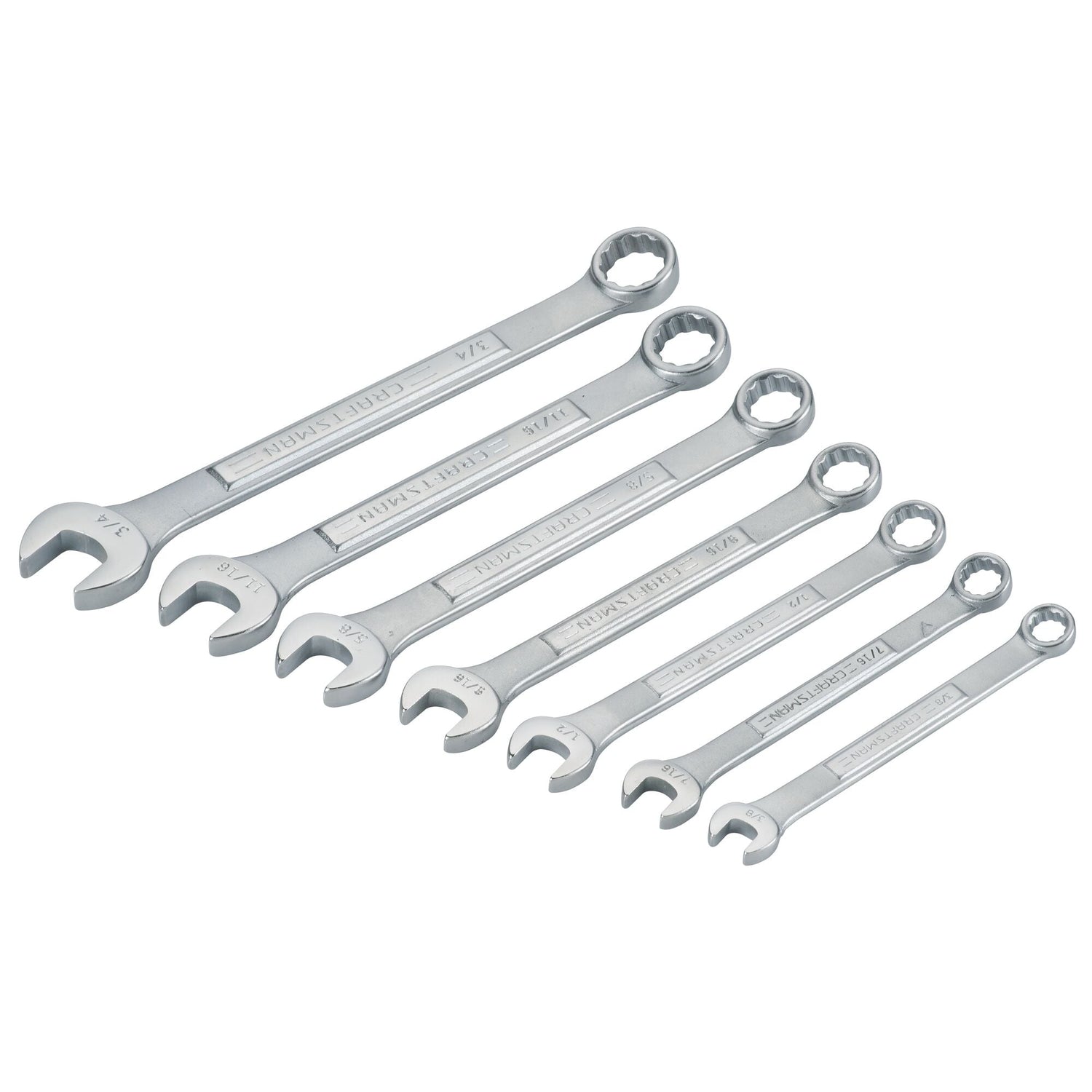 Includes (7) Combination Wrenches SAE (3/8-in, 7/16-in, 1/2-in, 9/16-in, 5/8-in, 11/16-in, 3/4-in)