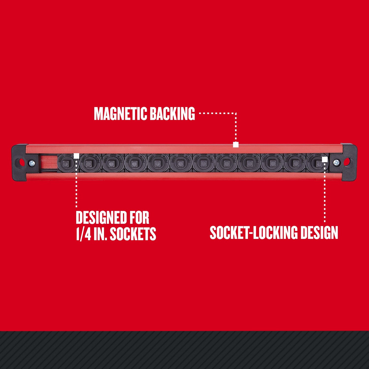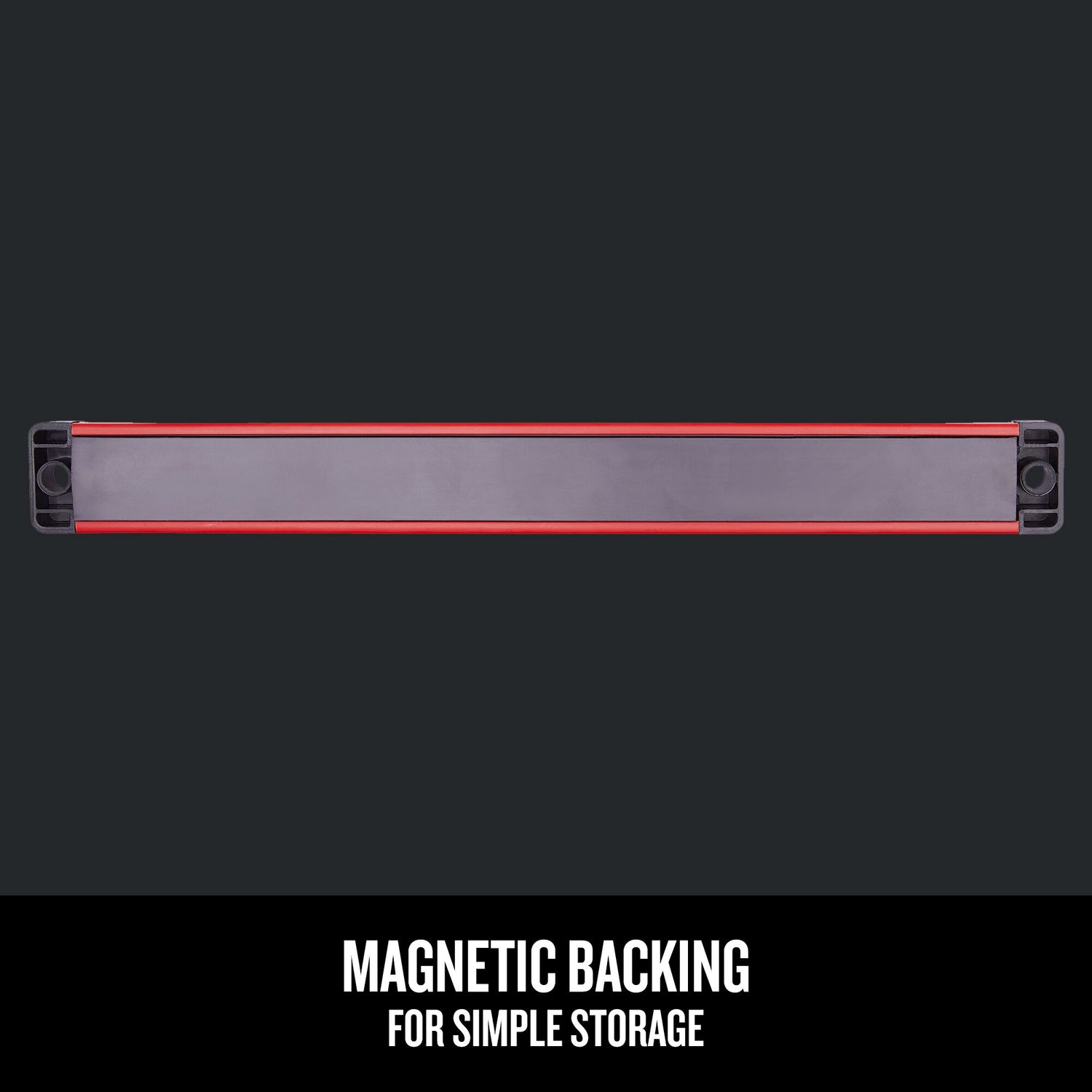 Its streamlined profile and magnetic backing make it well suited for convenient storage on walls and other surfaces around your jobsite or workspace.