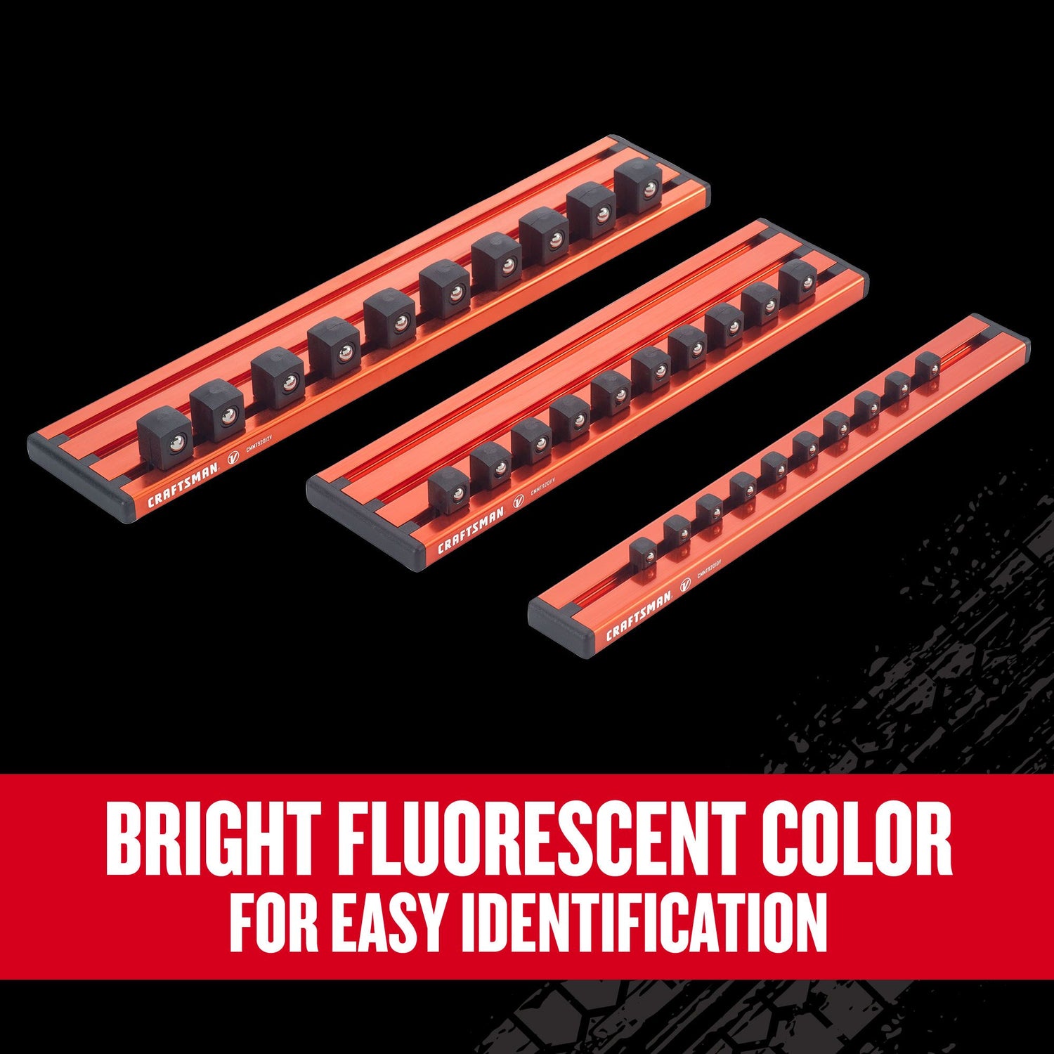Engineered for professionals, this socket rail set features three bright orange magnetic socket rails that are perfect for socket storage and organization.