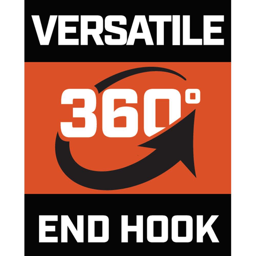 - Diamond-coated end hook grabs material from every direction and prevents slippage