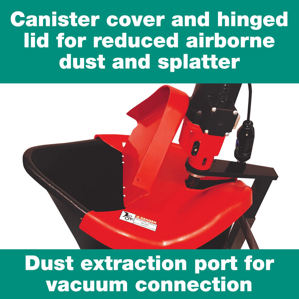 • Canister cover and dust extraction port reduces airborne dust and splatter