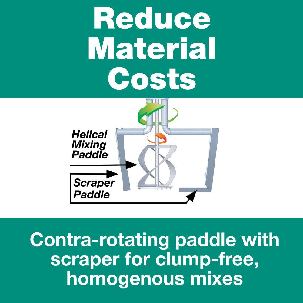 - Two contra-rotating paddles thoroughly combine compounds into a homogeneous, lump-free mixture