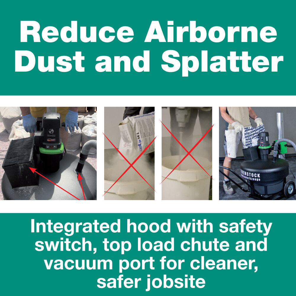 This powerful 2 speed mixer can handle batches up to 17 gallons/3 bags/2.5 cubic feet for a production rate up to 2000 lbs/hour, dramatically increasing your material output.