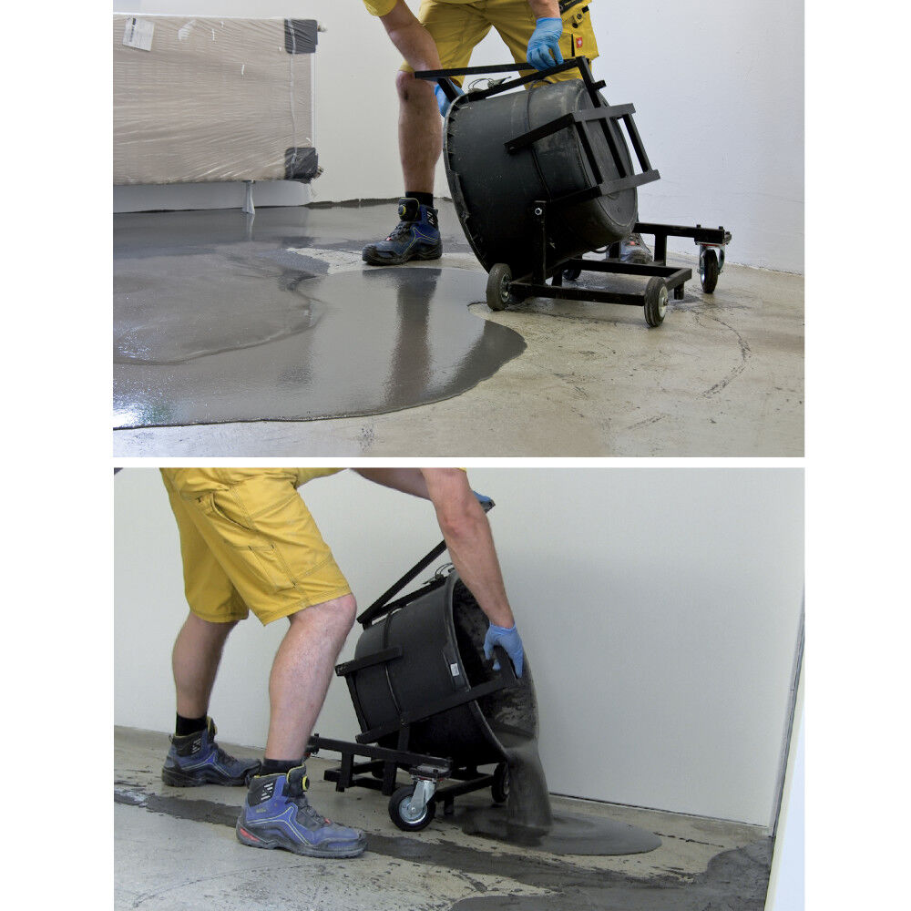 With the Twinmix 1800 TSD and an extra 32332000 side tip transfer cart 1 person can mix and pour 2 batches of material at a time.