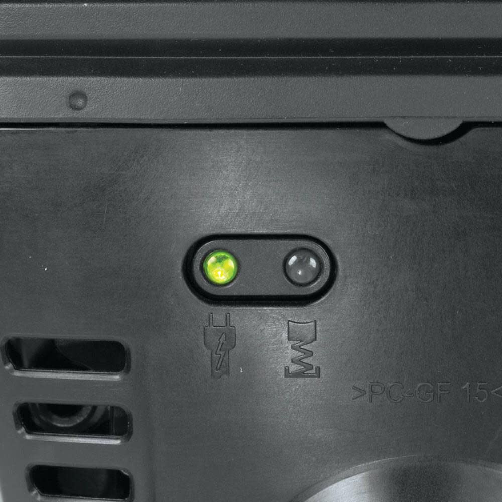 LED service light gives caution approximately 8 hours before brushes need to be replaced and also the LED power light indicates switch failure or cord damage.