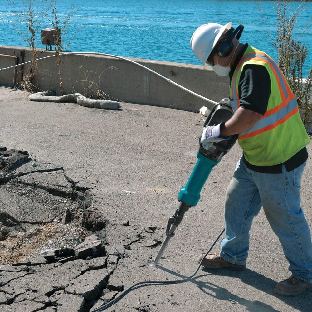 The Makita Advanced AVT breaker hammer is powered by a 15 Amp motor with improved hammer mechanism that delivers 53.9 ft-lb of impact energy to handle the most demanding applications concrete breaking.