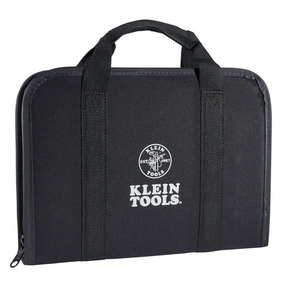 The highly durable, black nylon case features a zipper closure, custom-fitted tool pockets plus an extra pocket for storage of papers and other items.