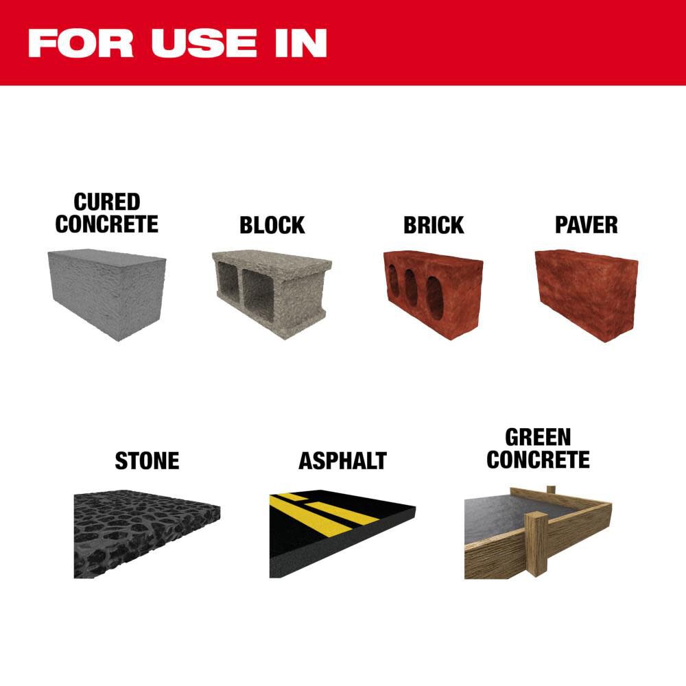 - Ideal for use with reinforced concrete, concrete, brick, block, green concrete, asphalt, stone, granite, concrete over gravel