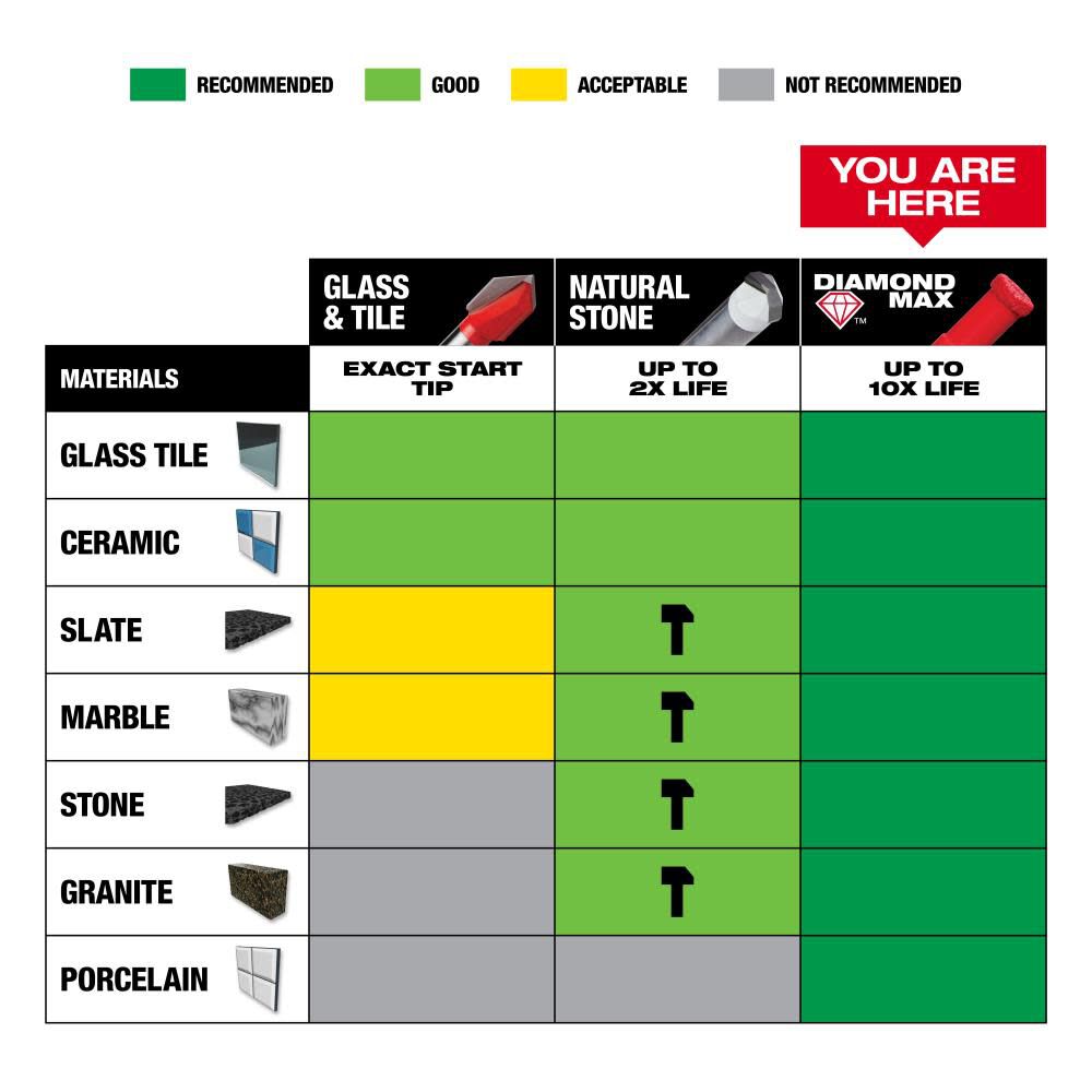 Choose the MilwaukeeÆ Diamond MAX Hole Saw for up to 10X longer life when cutting tile, stone and glass.