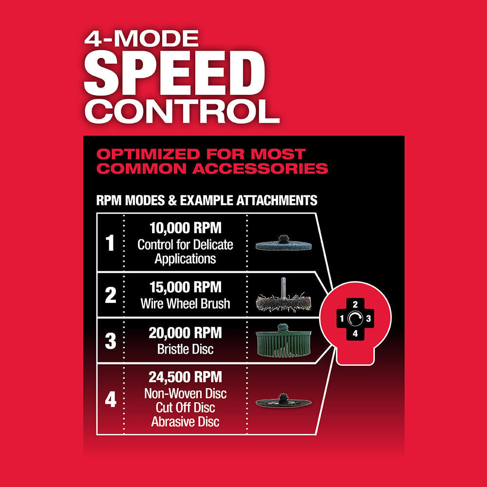 A 4-Mode RPM control and responsive variable speed trigger allow users unmatched control.