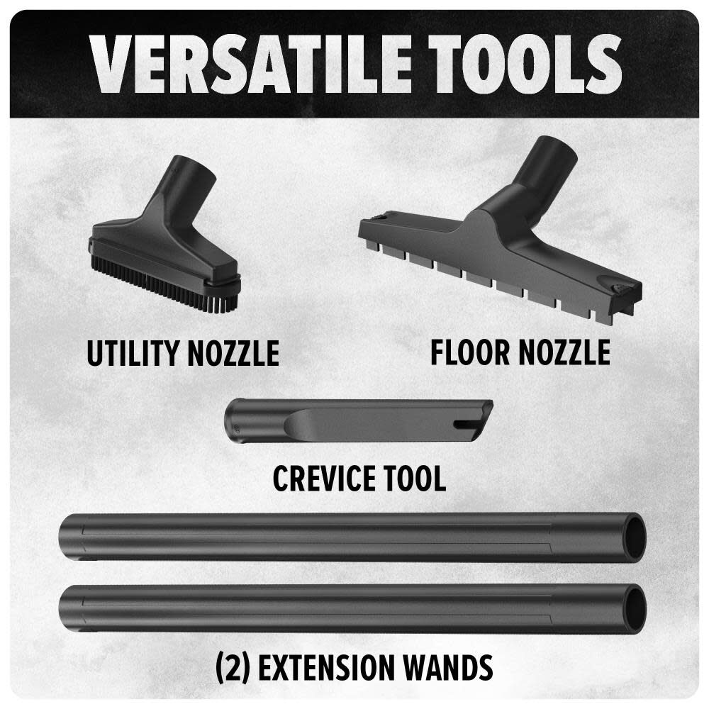 - VERSATILE TOOLS: The included tools make cleaning wet and dry messes quick and easy, with on-board tool storage