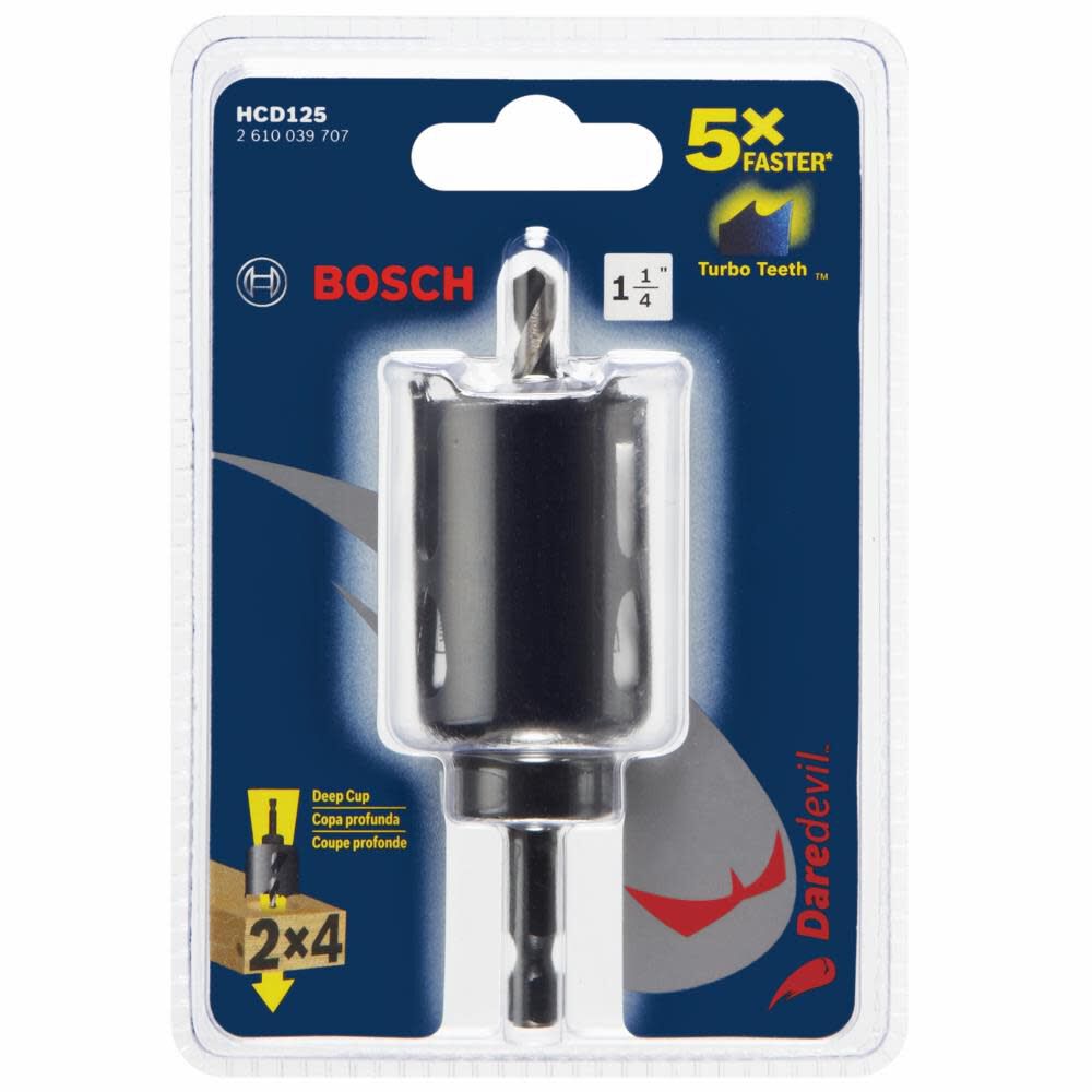 Bosch DaredevilÆ Wood Hole Saws are specially engineered to be 5X faster than standard wood hole saws, using Bosch's exclusive Turbo-Teeth design.