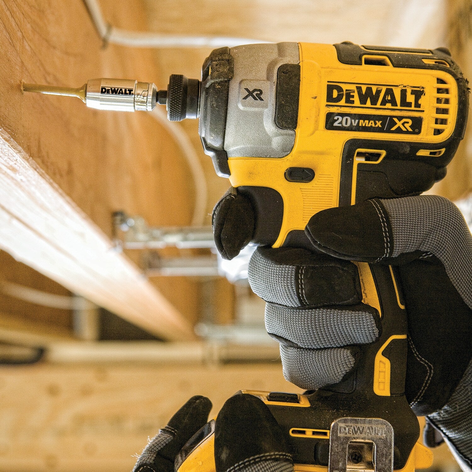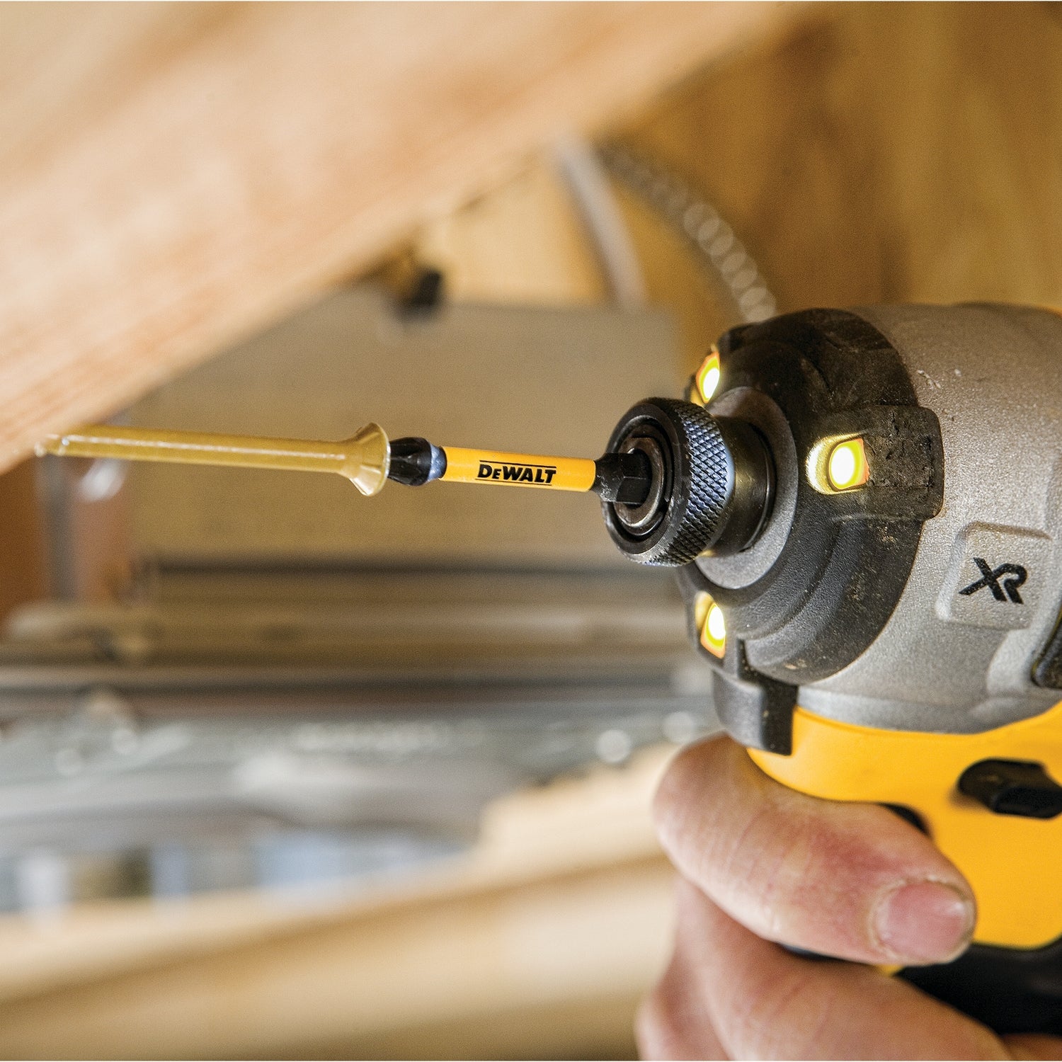 The DEWALT 2-piece 1/4-in x 2-in Torx impact driver bit features: Impact Ready bits with flextime have increased durability