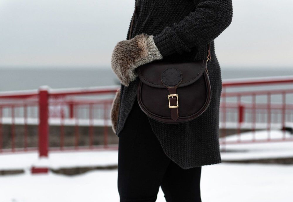 - Adjustable leather shoulder strap with handcrafted leather trim for comfort
