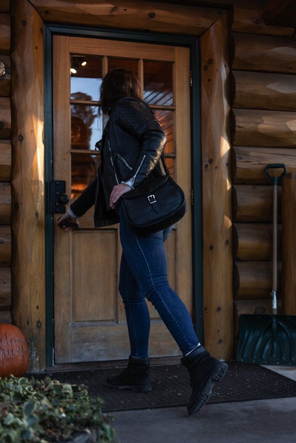 - Adjustable leather shoulder strap with handcrafted leather trim