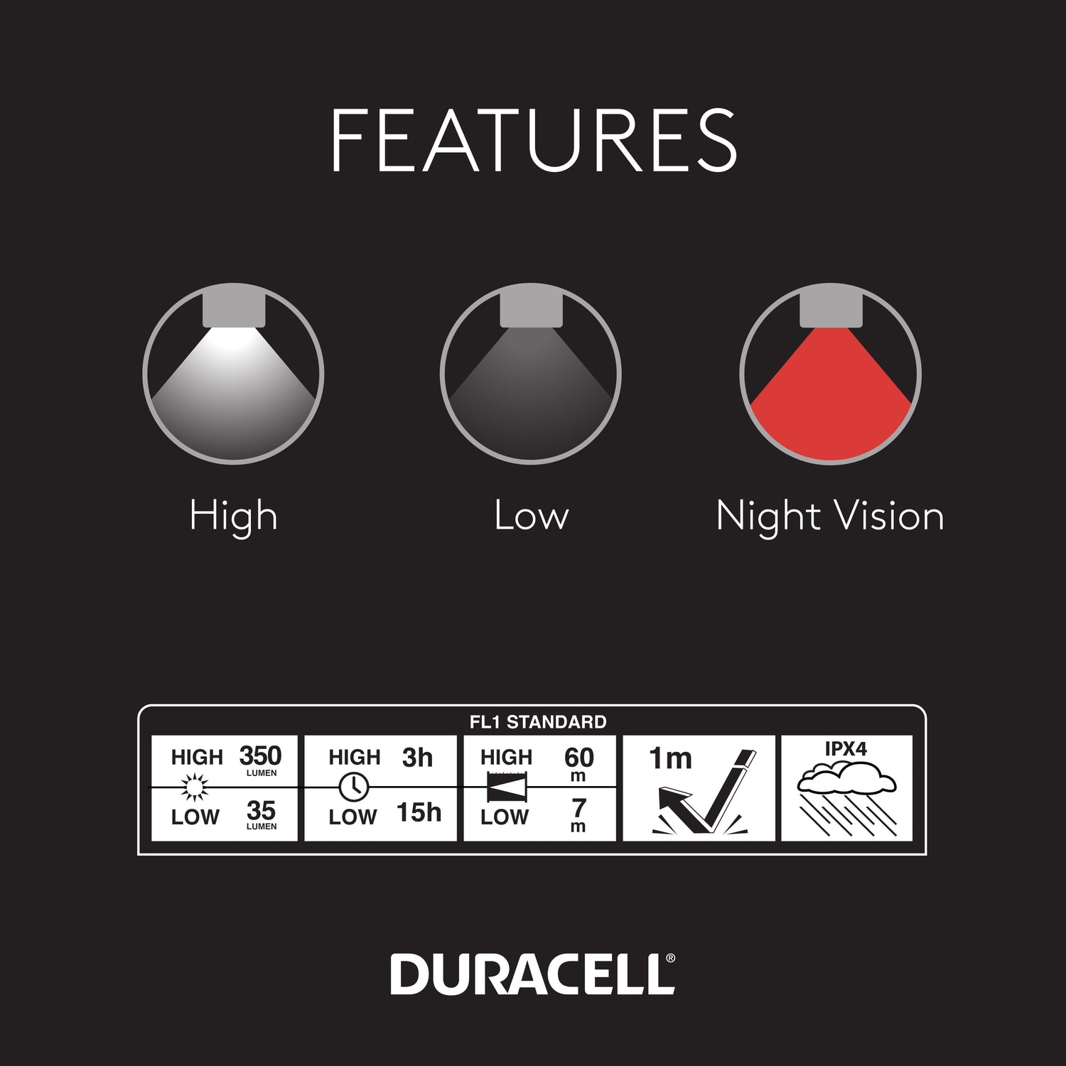 3 LIGHT MODES: Switch between High (350 lumens), Low (35 lumens), and the Red light for Night Vision.