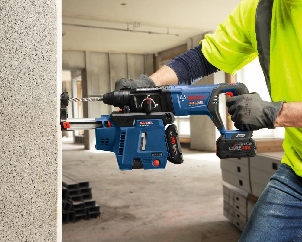 Mobile dust extractor design – built to deliver maximum mobility used with the Bosch cordless GBH18V-26D D-handle Bulldog™
