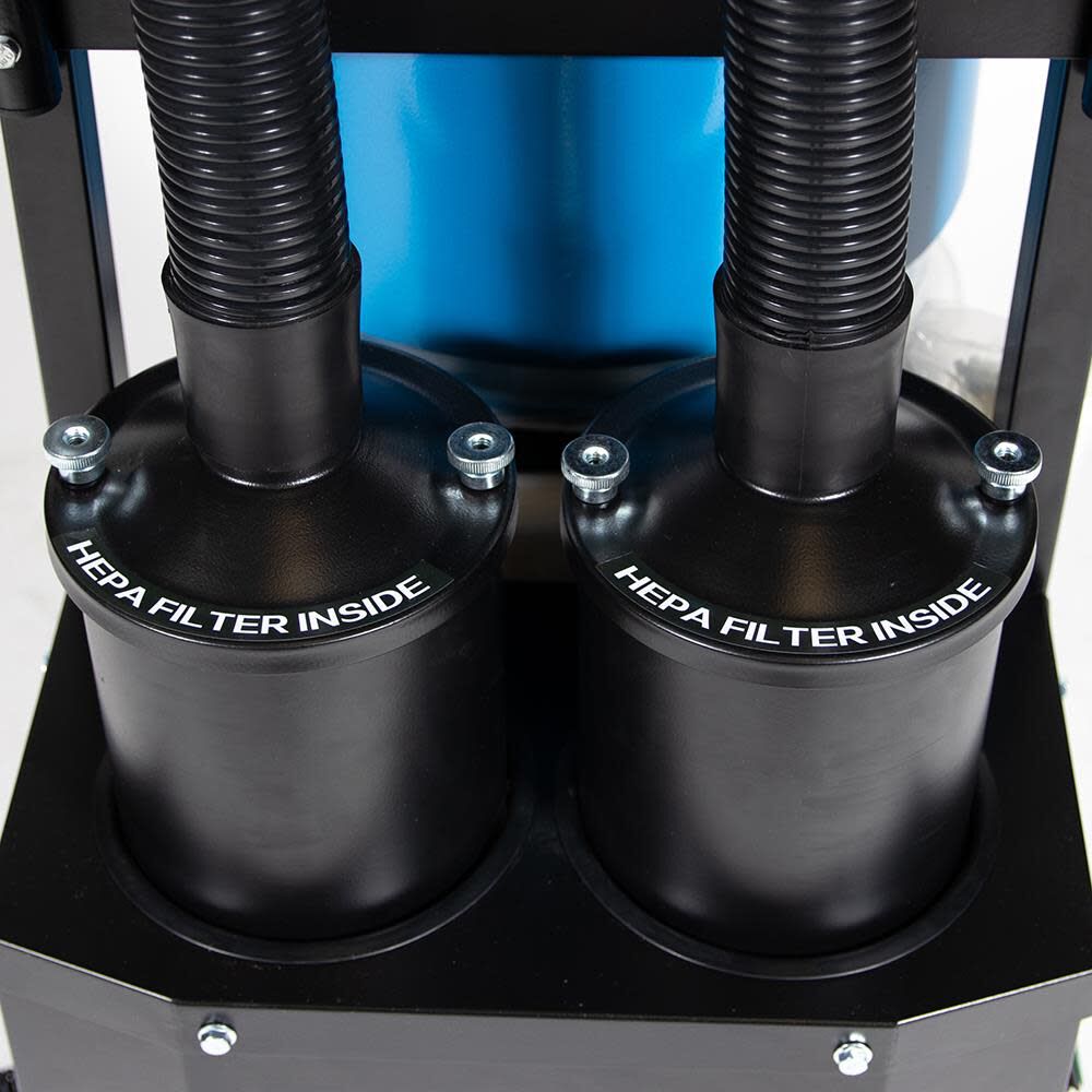 The HD2 is a two-motor HEPA dust extractor, featuring a two-stage filtering system comprised of one main conical filter and two HEPA filters.