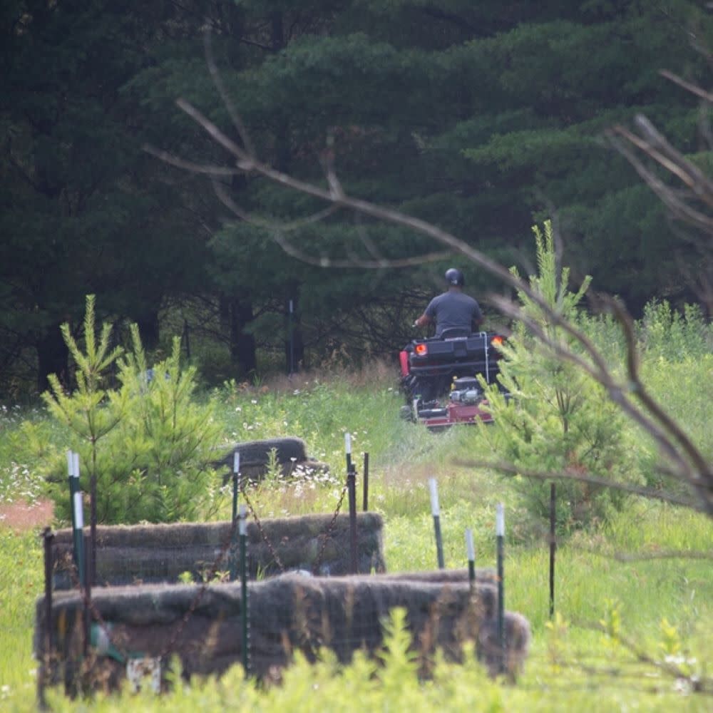 The dual cutting blades can be disengaged from your towing vehicle or from the front of the unit.†With the large†two gallon†fuel tank, the Acreage Rough Cut Mower is built to tackle the biggest jobs.
