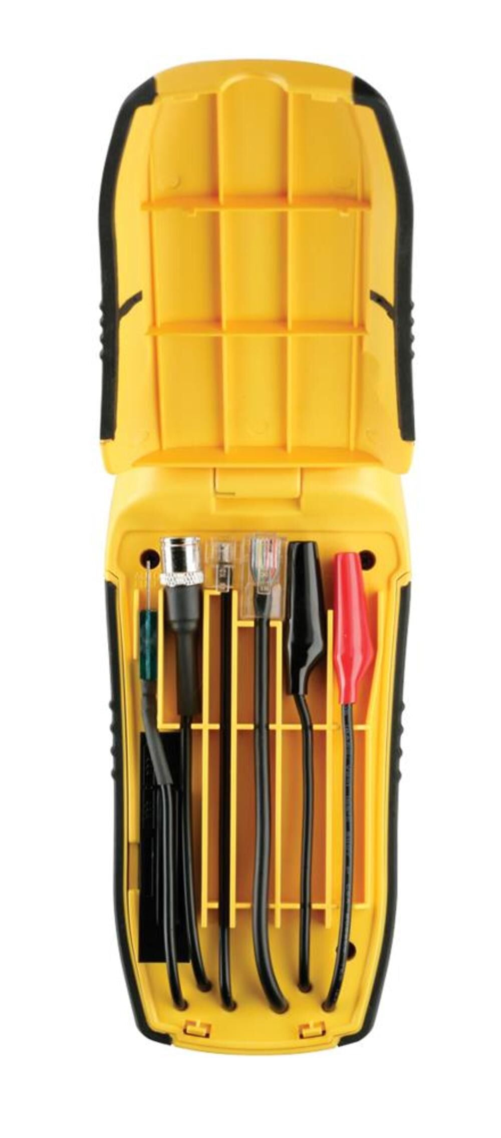 - Adapter plugs include: RJ-45, RJ-11, coax, automotive fuse blade and insulated clamps