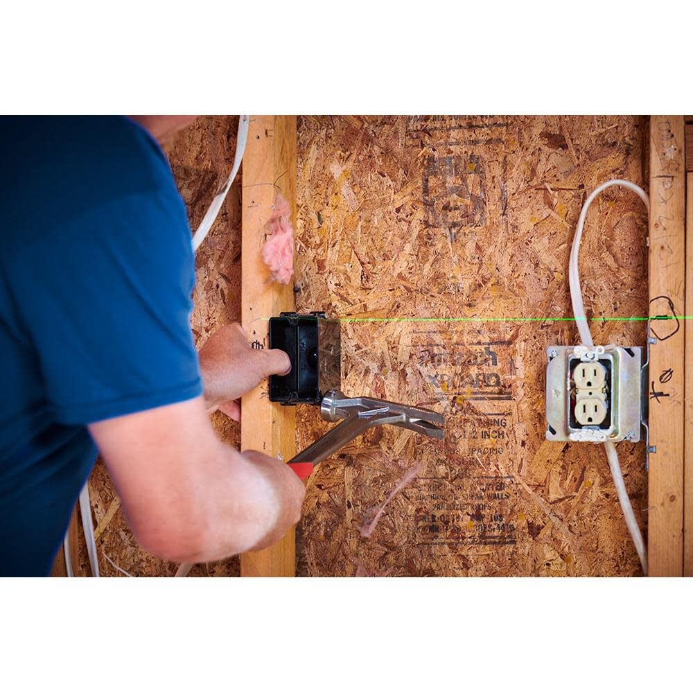 With a working range of up to 75Äô, the bright green laser provides pronounced visibility when working even in well-lit conditions.