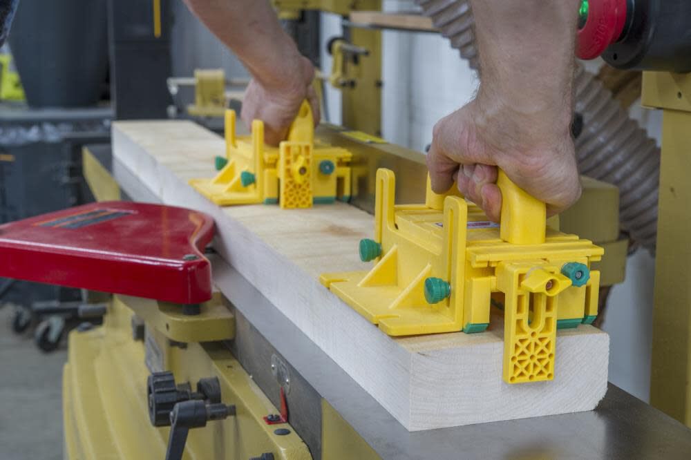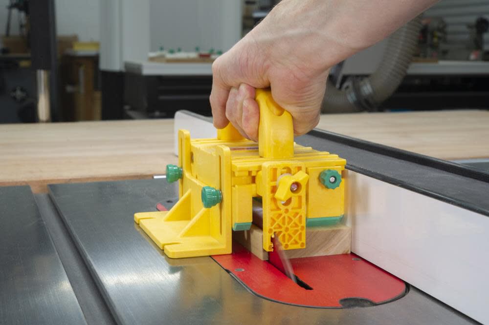 The Gravity Heel is a fully adjustable heel with auto-retracting technology that provides superior pushing power, hooks the tail end of your workpiece, and automatically retracts mid-board.