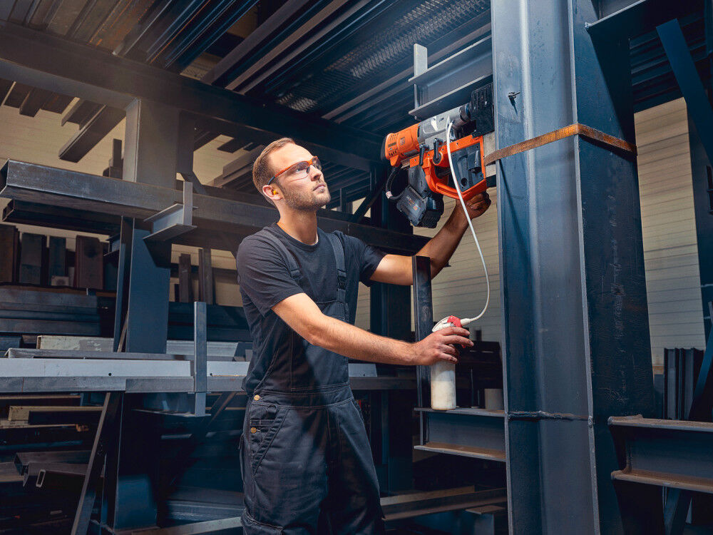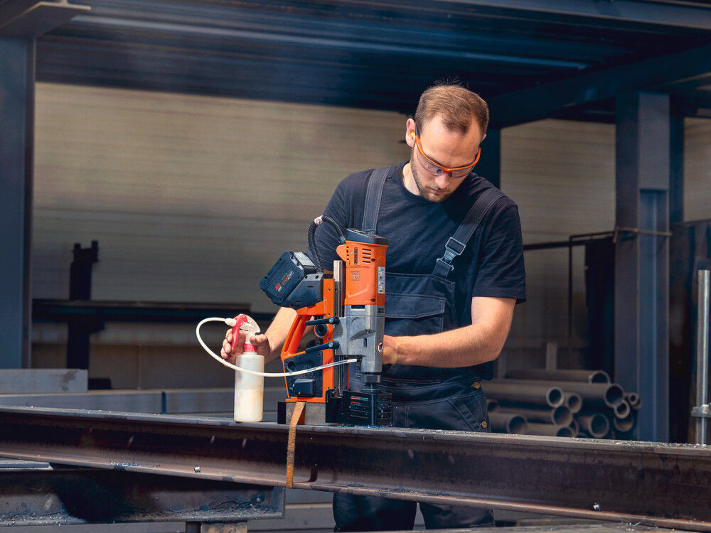- Includes: Drill, pump, safety strap, chip hook, 3 centering pins, chip guard, drift, 2 batteries, charger, tool case, Magbrush, cutting paste, 5 cutters, L-BOXX
